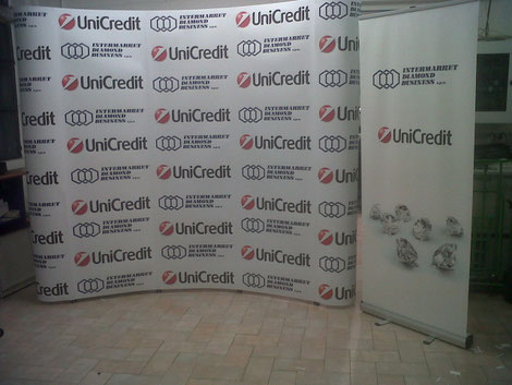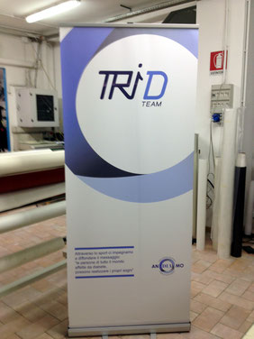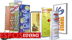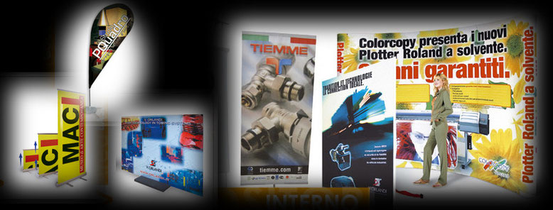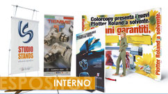 Espositori per interno ed esterno con stampa su Telo PVC o carta plastificata opaca/lucida, avvolgibili, fissi, a parete